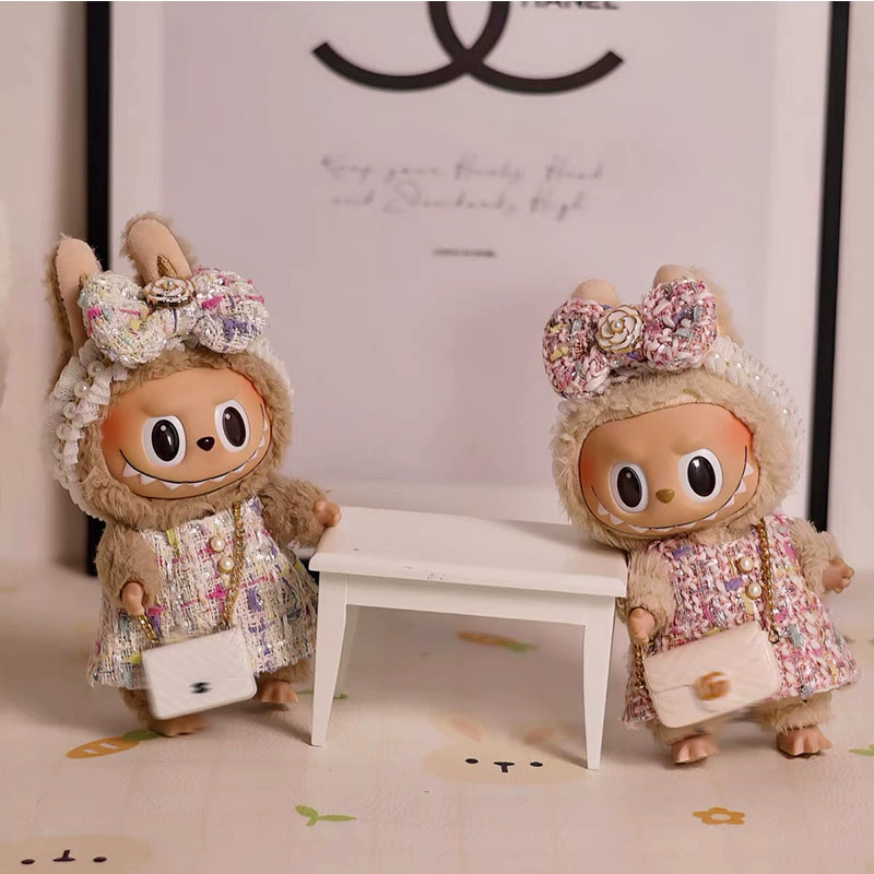 ملابس دمية لابوبو 17 سم وجه من الفينيل معكرون ينبض على شكل قلب ملابس دمية لابوبو تغيير الملابس