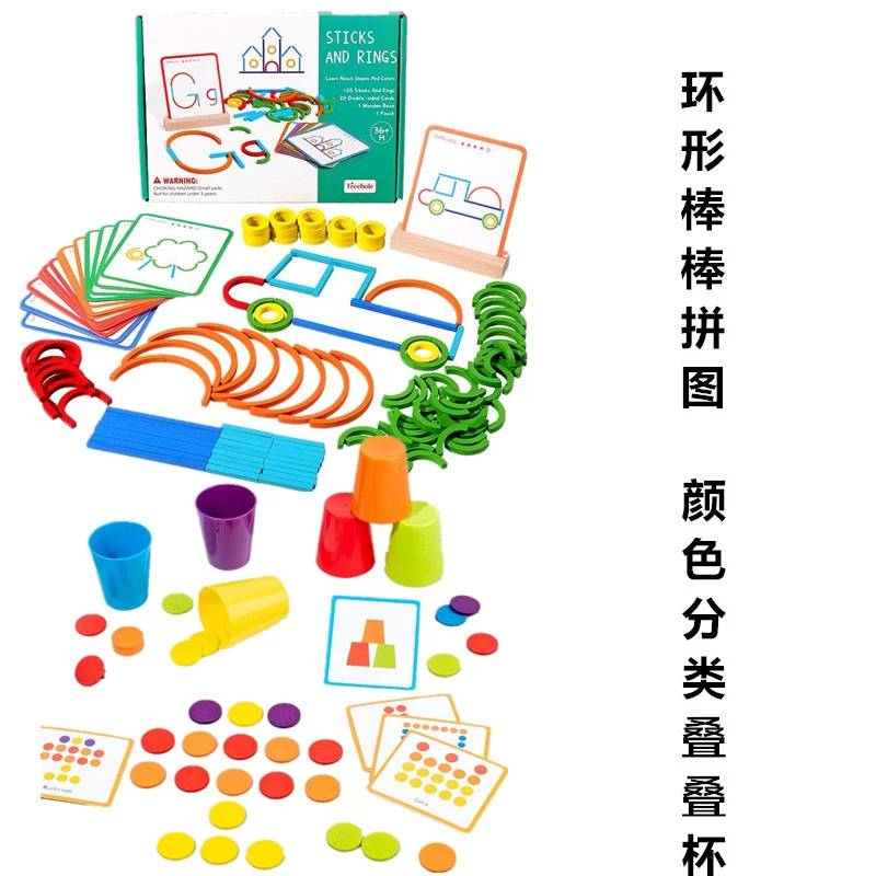 لغز حلقة وعصا إبداعية للأطفال، مكعبات بناء مجردة مجمعة، تفكير منطقي، تدريب التعليم المبكر، ألعاب التطوير التعليمي