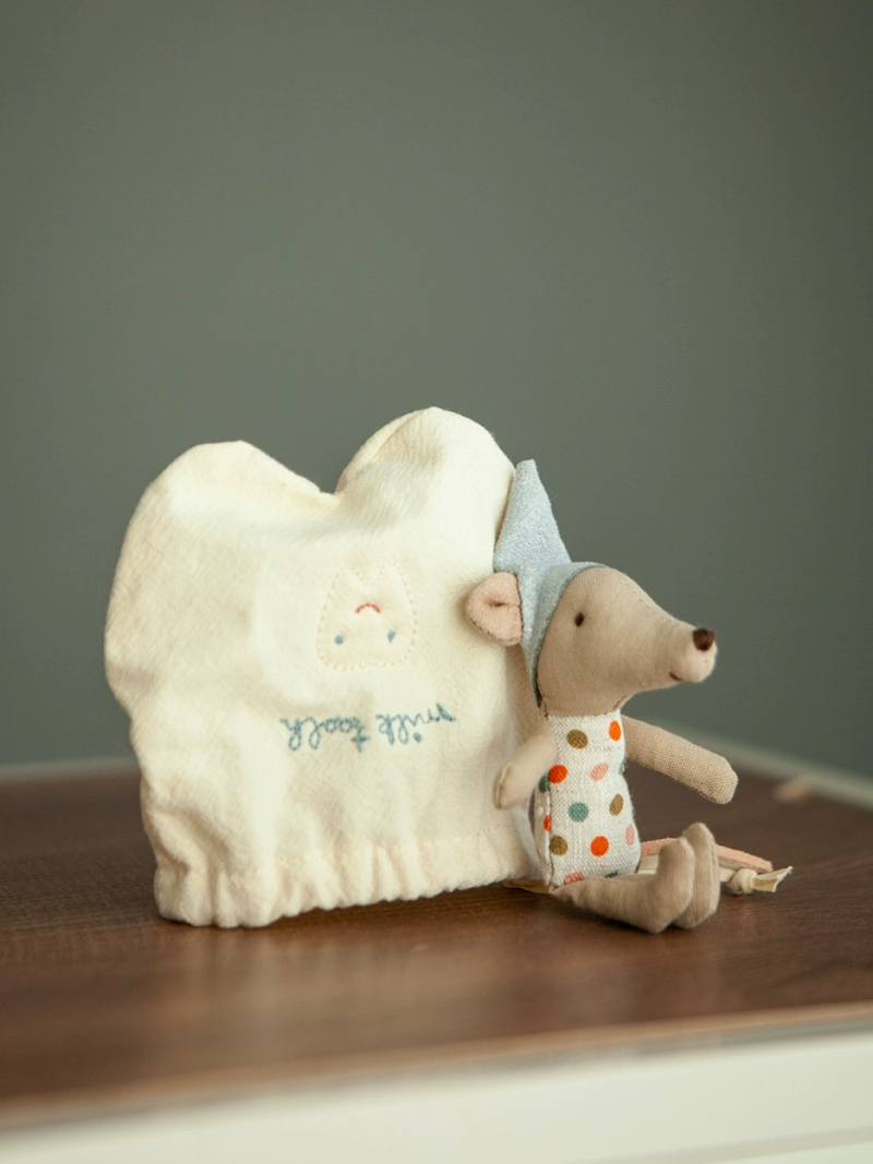 دمية صغيرة محشوة مصنوعة يدويًا على شكل فأر تحكي القصة وتلعب لعبة منزلية، أنيقة وصغيرة ورائعة