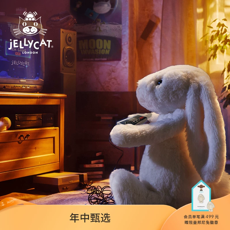 دمية جيلي كات الكلاسيكية ذات اللون الأبيض الحليبي من القطيفة
