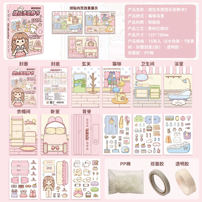 ملصقات فقاعات الكتب الهادئة، ملصقات لطيفة ثلاثية الأبعاد، مواد مجمعة لمشهد الكتاب، كتاب هادئ للفتيات الجديدة