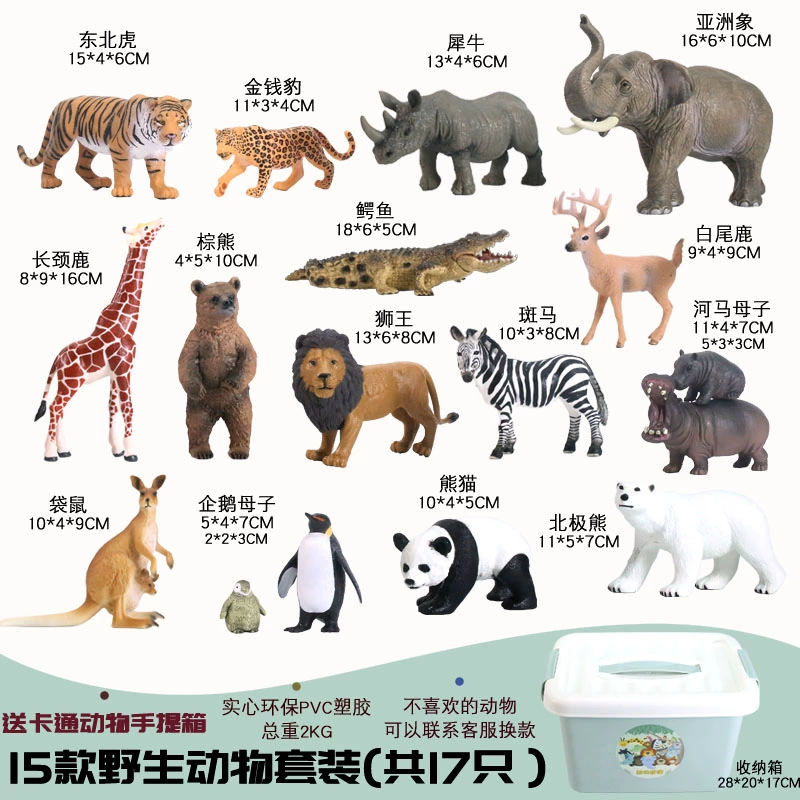 مجموعة صندوق تخزين هدايا لدمية حديقة الحيوان الصلبة لنماذج الحيوانات البرية المقلدة