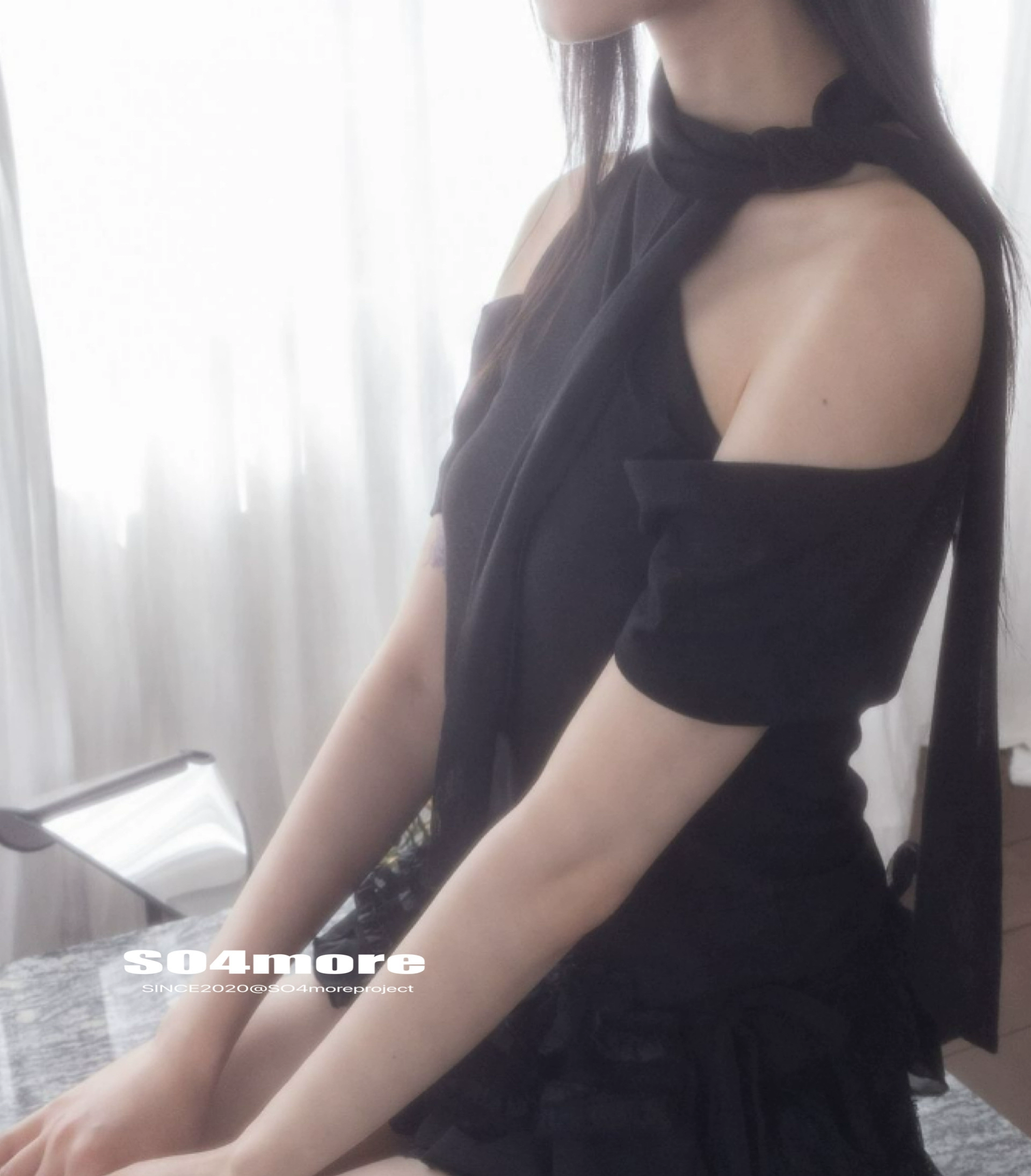 【SO4more】 تي شيرت بتصميم متخصص للبريد المباشر الكوري تم تفكيكه وشاح ذكي بدون أكتاف بأكمام قصيرة