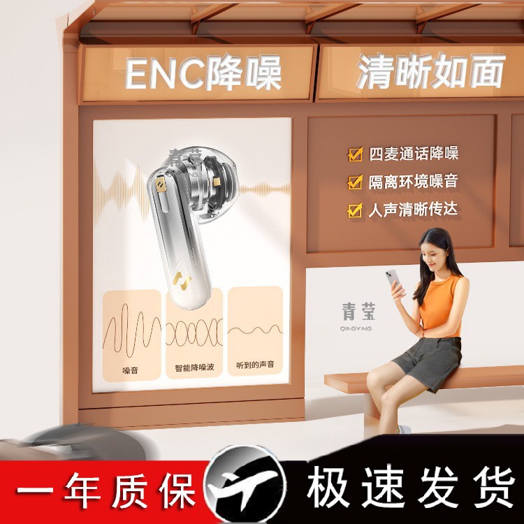 蓝牙耳机2024新款半入耳无线降噪长续航女适用水果华为小米青莹
