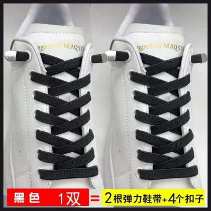 | nameOriginal | 0.8cm wide elastic shoelaces for men and women, no need to tie shoelaces, black and white elastic shoelaces, flat buttons, no need to tie for lazy people |