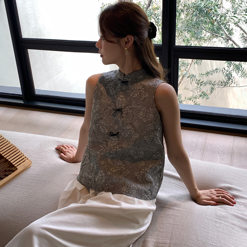 | nameOriginal | 04.22 Thirteen Lines Summer 2024 Summer New Chinese Retro Zen Jacquard Bow Collar Vest Women S0951 |
