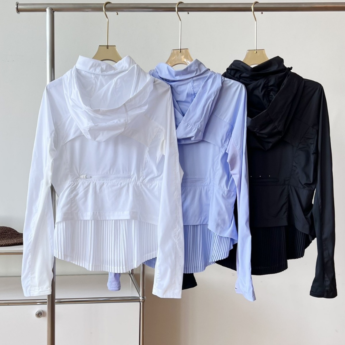 | nameOriginal | 052105 summer new ladies daily stand collar zipper waist slimming three-color hooded skin sunscreen coat |