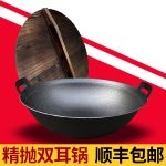 06YM double-ear pig iron pot old-fashioned rural round bottom large iron pot household thickened polished cast iron wok without coating
