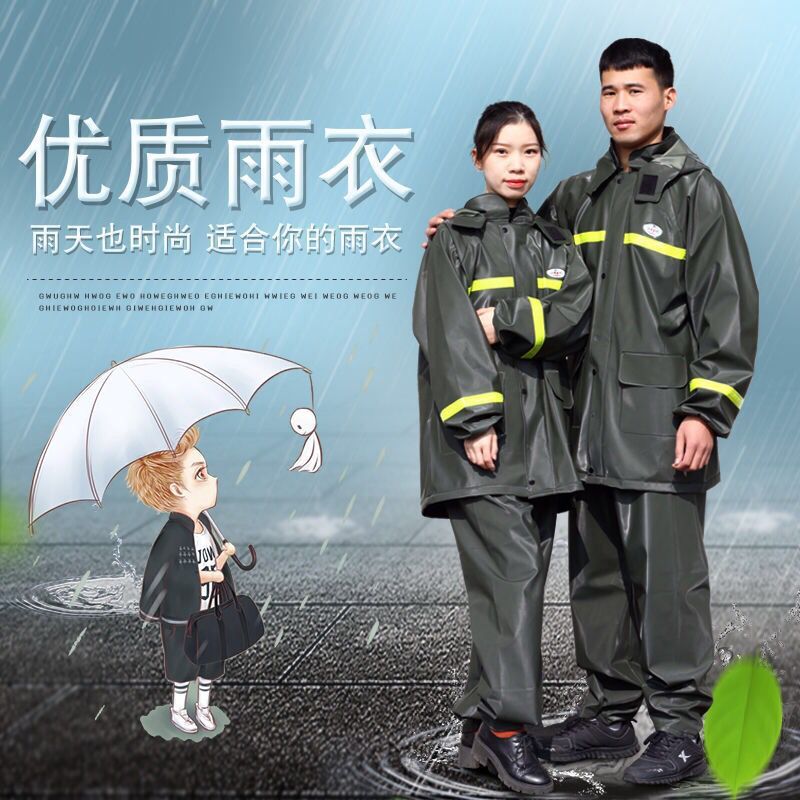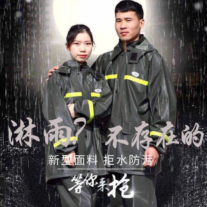 0WYV raincoat rain pants suit men's thickened beef tendon adult waterproof reflective split lightweight breathable motorcycle riding