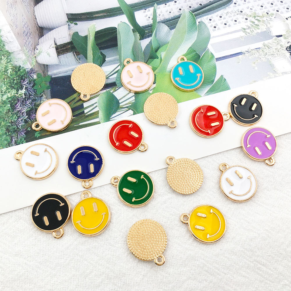 1 Korean-style diy jewelry accessories drop oil alloy small pendant bracelet necklace headdress drop oil cute smiley face