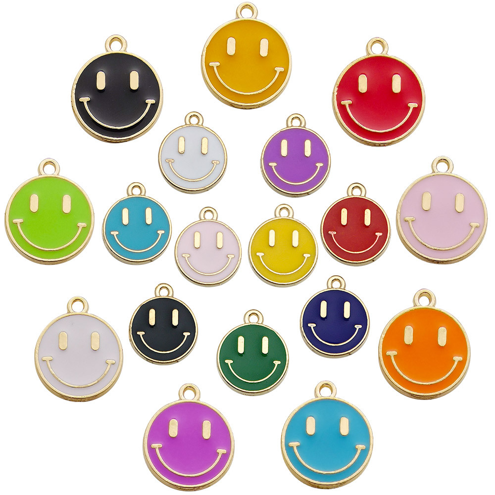 1 إكسسوارات مجوهرات ذاتية الصنع على الطراز الكوري قطرة زيت سبيكة صغيرة قلادة سوار قلادة غطاء الرأس قطرة زيت وجه مبتسم لطيف