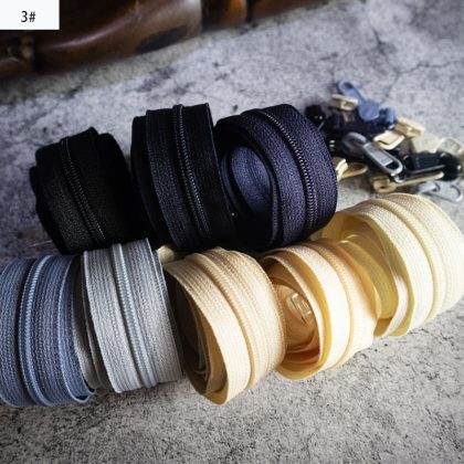 100 color No. 3 ykk luggage nylon zipper black light gray navy blue beige code and puller