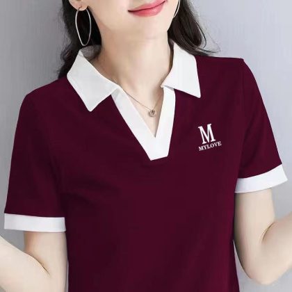 | nameOriginal | 100 Quality Solid Color Summer Short-sleeved T-shirt Lapp Women's 2024 New Polo Collar Loose Slimming Stylike Top |