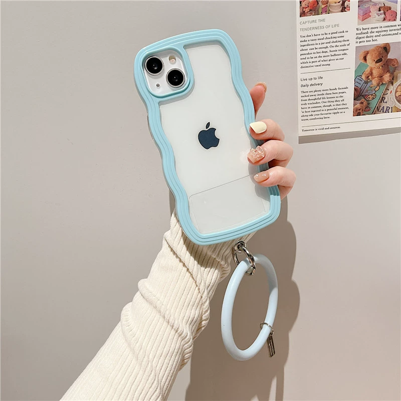 | nameOriginal | 15 Simple solid color wavy border 13 Bracelet 12 Suitable for iphone16 mobile phone case 7 Apple 14plus transparent 11pro Max hanging ring Xs Max silicone ring XR anti-fall soft SE2 female 8 |