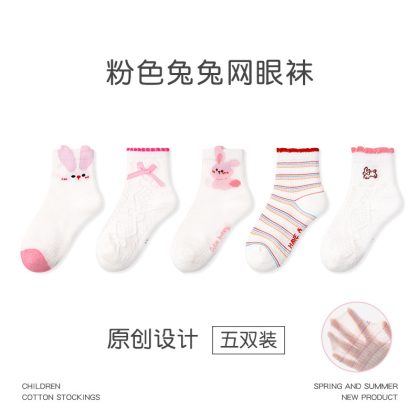 | nameOriginal | 1700 children's socks wholesale 2024 spring and summer thin pink rabbit mesh socks combed cotton breathable socks for girls |