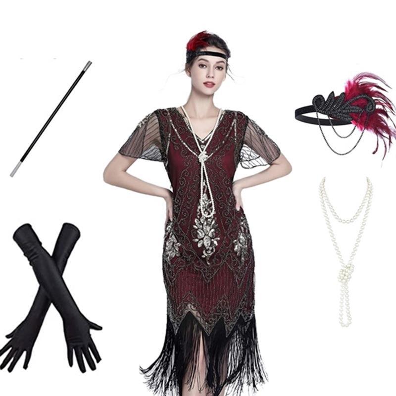 | nameOriginal | 1920s Vintage Gatsby Beaded Tassel Dress Sequin Cocktail Party Evening Dress Set Generational Hair |