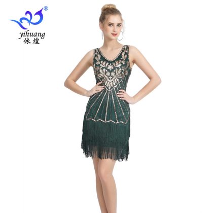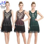 1920s خمر الخامس الرقبة الترتر فستان رقص ضوء فاخر الترتر شرابة فستان فستان حفلة الكرة فستان رقص فستان صغير