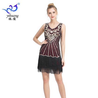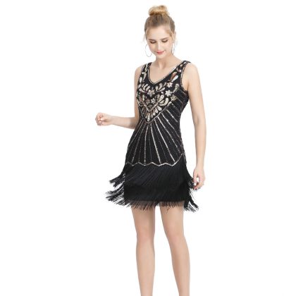 1920s Vintage V-Neck Sequin Dance Dress Light Luxury Sequin Tassel Dress dress Party Ball Dance Dress Small Dress