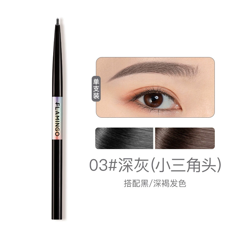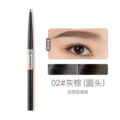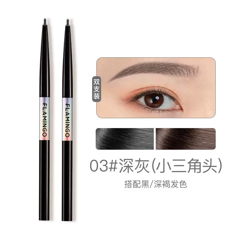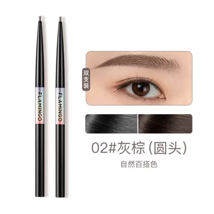 2 pieces Flamingo exquisite hand-painted fine eyebrow pencil for women, thin round head, small triangle, long-lasting waterproof and non-fading one-line eyebrow pencil