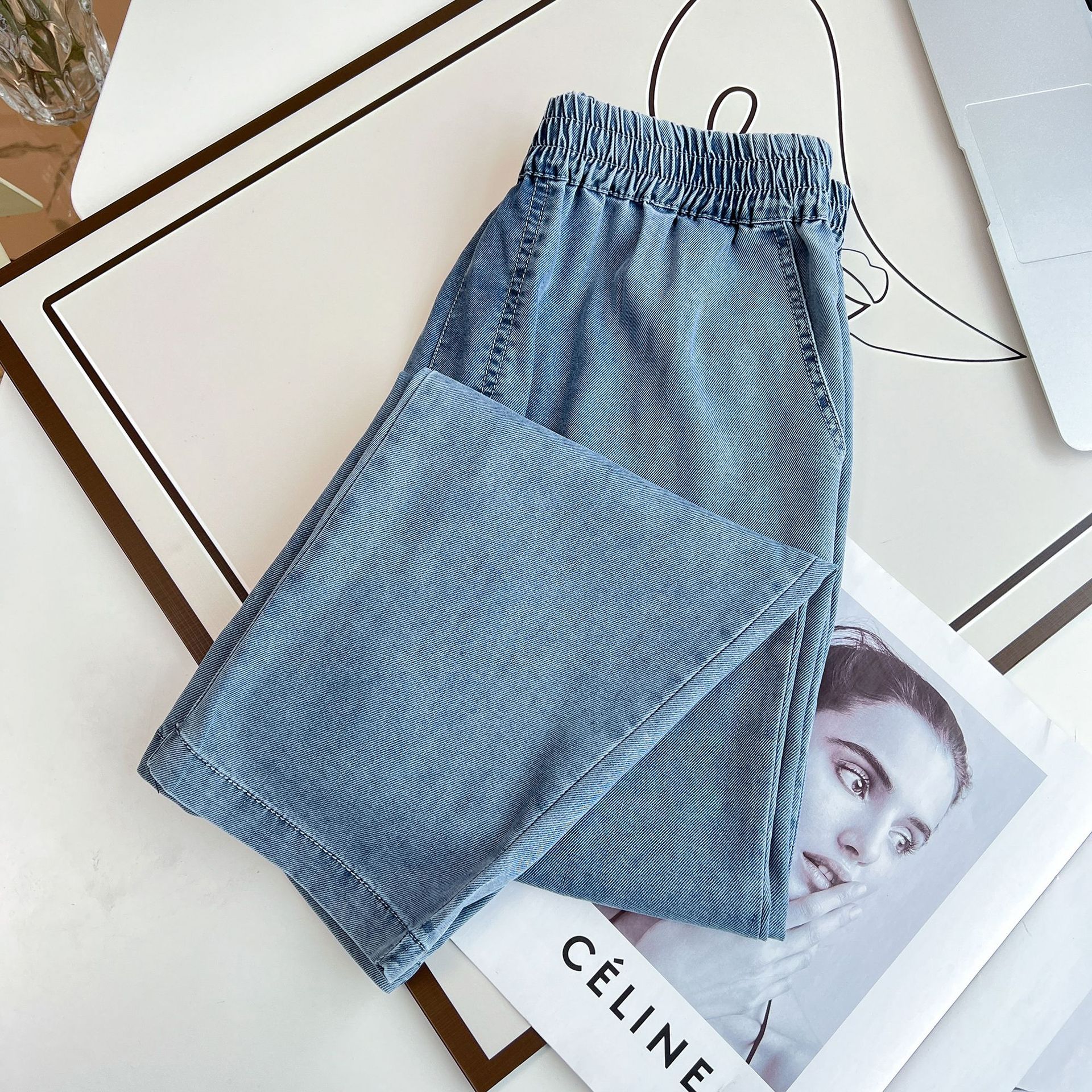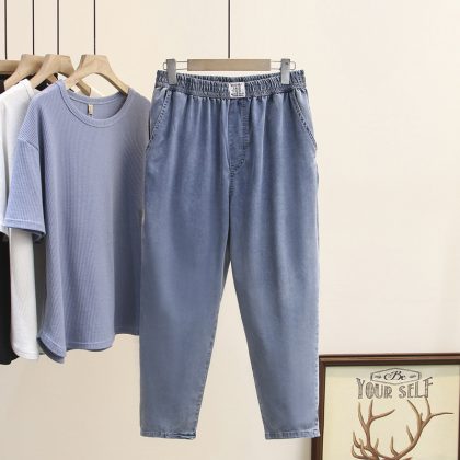 | nameOriginal | 200kg fat MM spring and summer new Korean version of simple thin denim pants casual pants plus size women's 2230 |