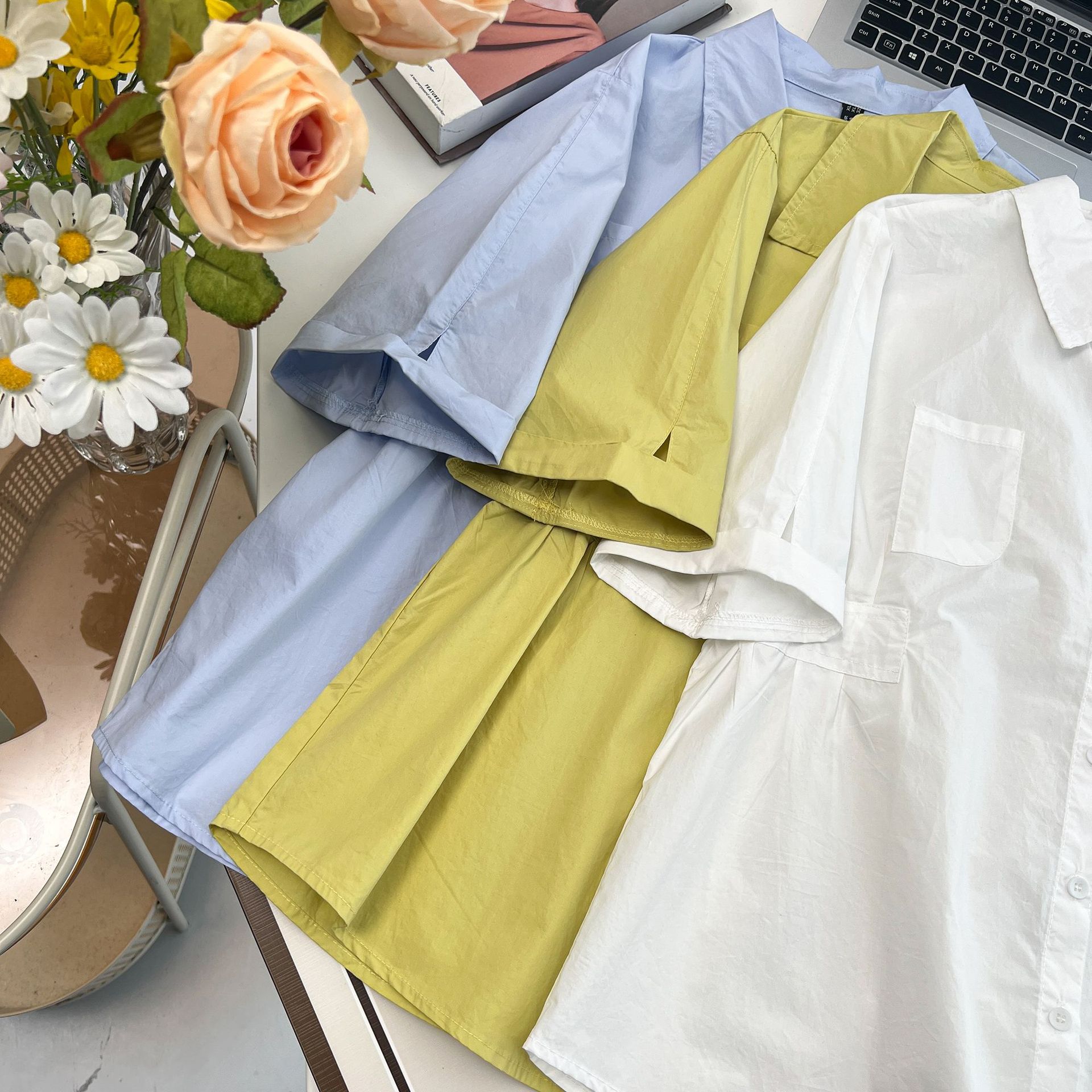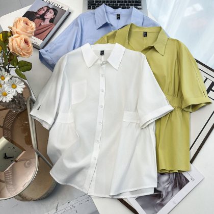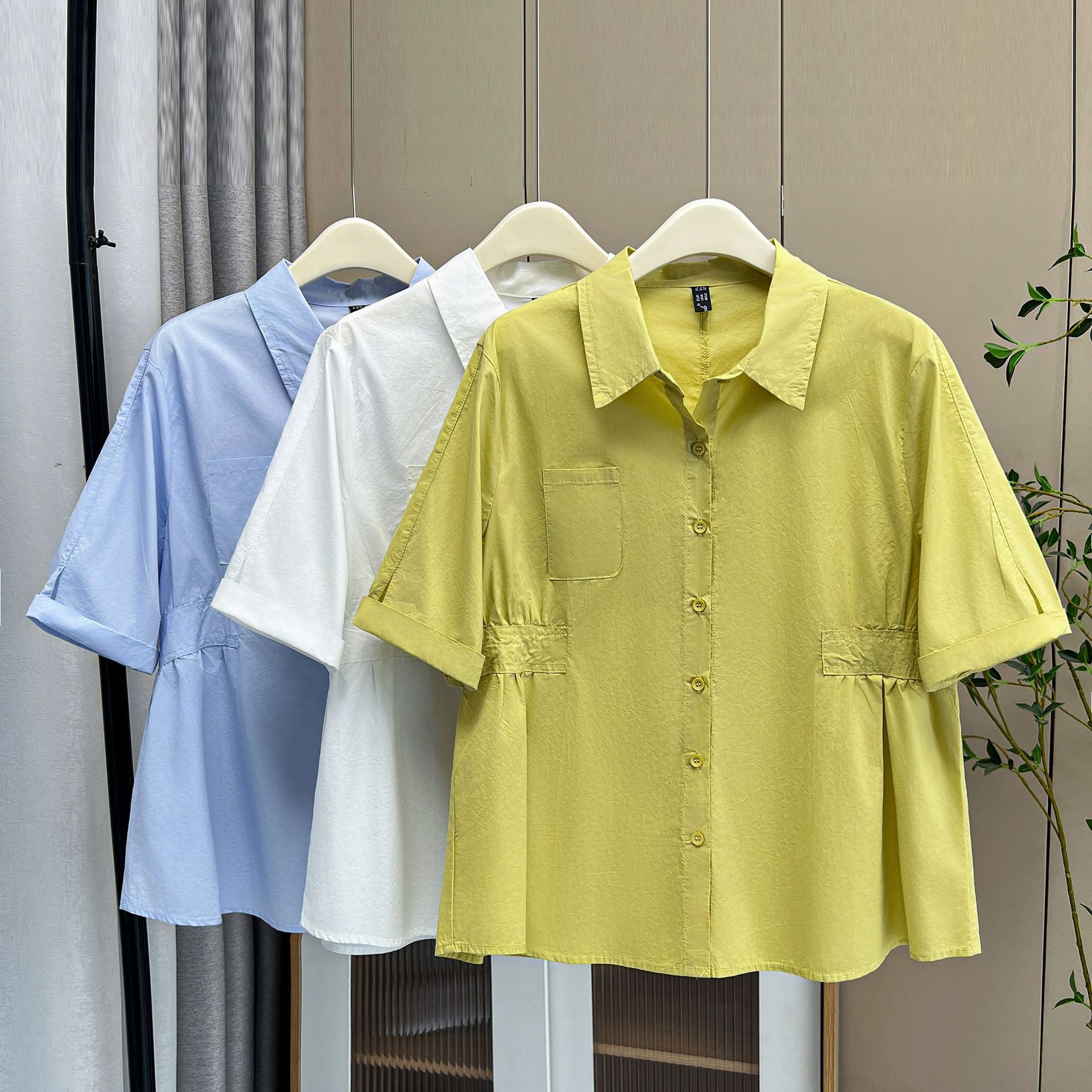 | nameOriginal | 200kg fat sister summer new simple waist solid color short sleeve shirt plus size women's casual shirt 3404 |