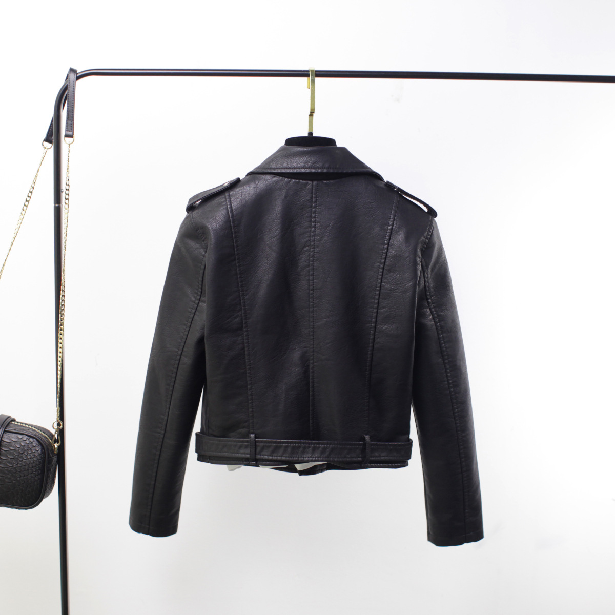 2019 Spring and Autumn New Women's Clothing European and American Fashion pu Jacket Short Lapel Motorcycle Small Leather Jacket Jacket Top with Belt