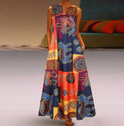 | nameOriginal | 2020 AliExpress New Explosions Women's V-neck Sleeveless Summer Retro Printed Color Block Stitching Dress 2017# |