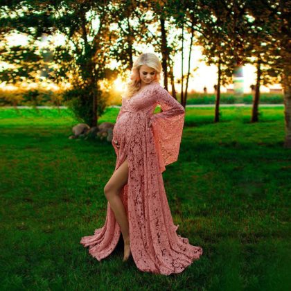 | nameOriginal | 2020 Amazon European and American Sexy Deep V-neck Trumpet Sleeve Lace Perspective Loose Split Tail Dress |