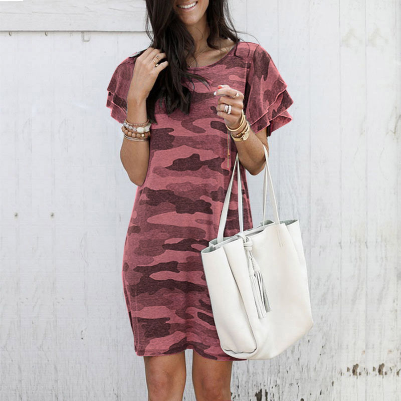 | nameOriginal | 2020 Amazon wish summer new European and American cross-border Women's round neck camouflage printed short sleeve loose dress |