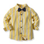 2020 قميص للأولاد مخطط بأكمام طويلة وياقة صغيرة ومتوسطة الحجم للأطفال لفصل الربيع والخريف سترة خارجية فستان رسمي