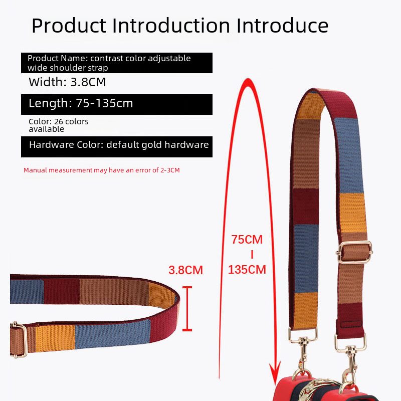 nameOriginal | 2020 New Style Contrast Color Adjustable Ethnic Style Wide Shoulder Strap Single Shoulder Crossbody Thickened Colorful Wide Belt Bag Accessories |