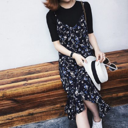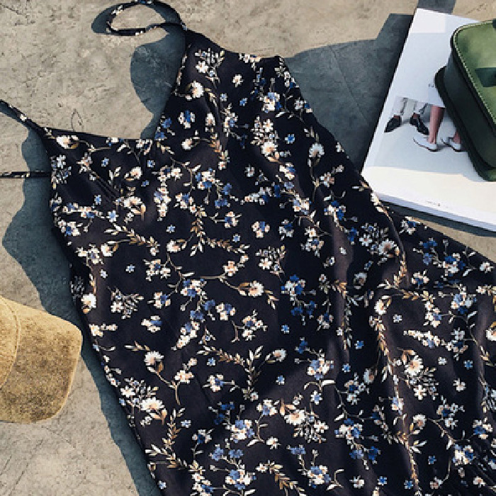 2020 New Vintage Floral Slip Dress Women's Summer Mid-length Ruffled Base Slip Dress Chiffon Skirt