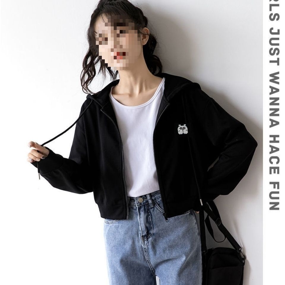 2021 New Spring and Autumn Short Thin Sweatshirt Coat Women's Korean-style Loose Hooded Student Ins Short Top