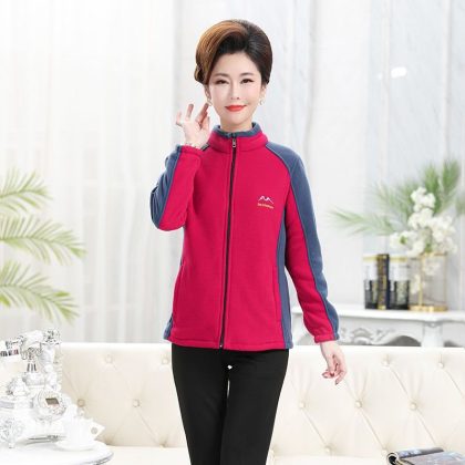 | nameOriginal | 2021 Spring and Autumn Women's Thickened Fleece Fleece Jacket Color-matching Collar Middle-aged and Elderly Casual plus size Mother Clothes |