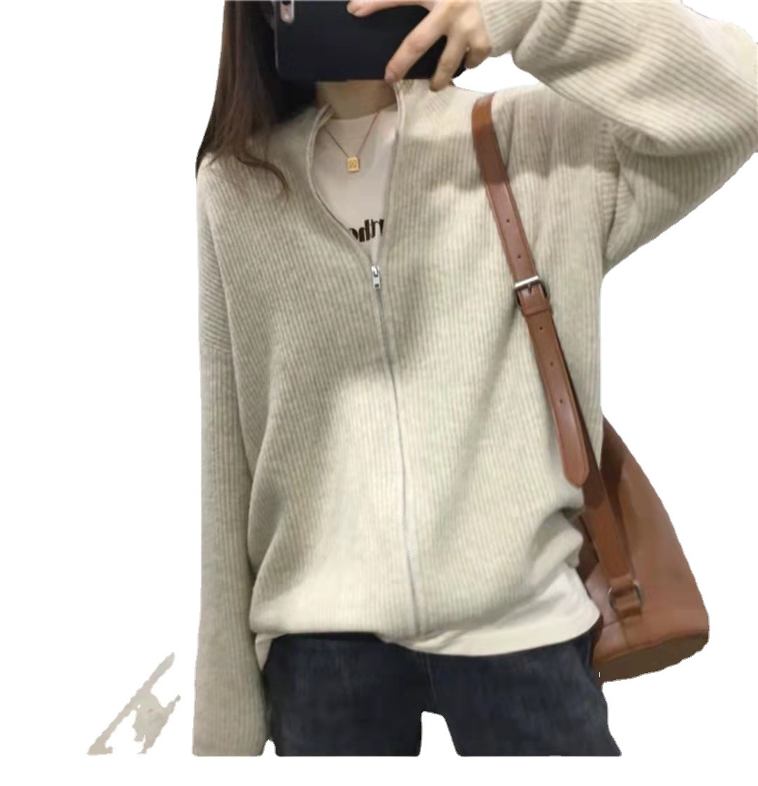 | nameOriginal | 2022 Autumn and Winter New Lazy Style Casual Loose Solid Color Jacket Korean Style Zipper Collar Long Sleeve Knitted Cardigan |