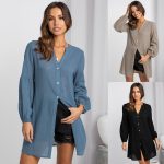 | nameOriginal | 2022 autumn and winter New shirt Amazon foreign trade European and American women's fashion casual mid-length slim-fit solid color shirt |