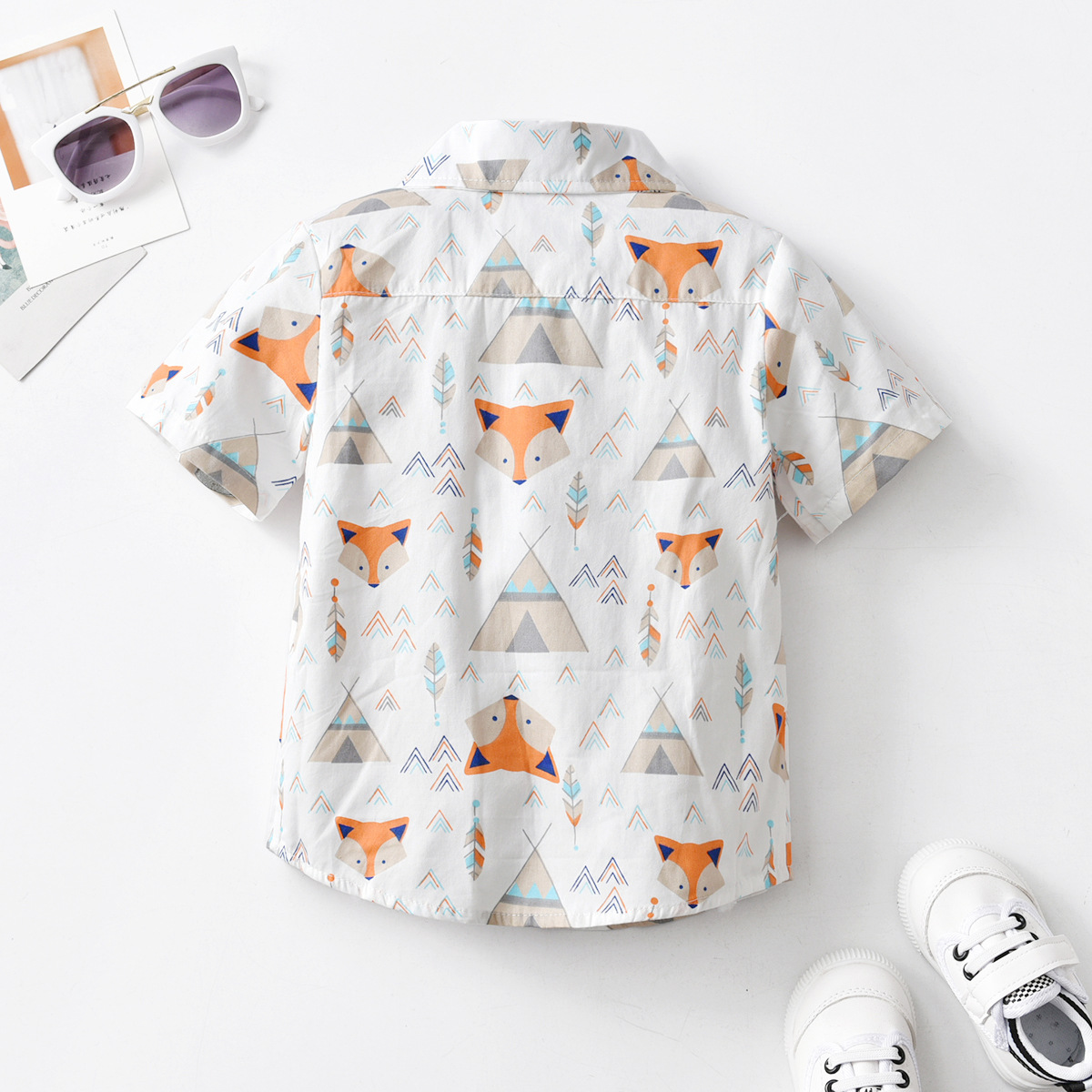 2022 boys' cartoon short-sleeved shirt children's baby summer cardigan printed top outing clothes casual