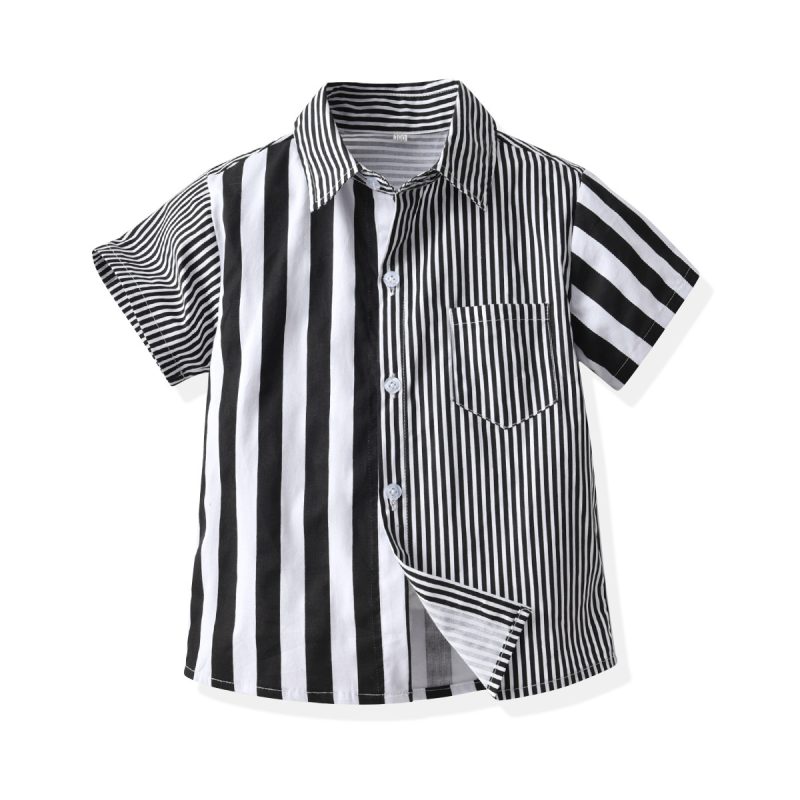 nameOriginal | 2022 Boys Striped Lapel Short-sleeved Shirt Children's Baby Summer Cardigan Dress Casual Short-sleeved Top |