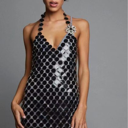 | nameOriginal | 2022 European and American Ebay hot sexy fishing net rhinestone sling neck hollow vest skirt transparent glass material |
