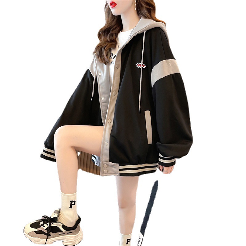 | nameOriginal | 2022 New Spring and Autumn Hooded Sweater Women's Lazy Style Design Stitching Contrast Cardigan Baseball Coat Women |