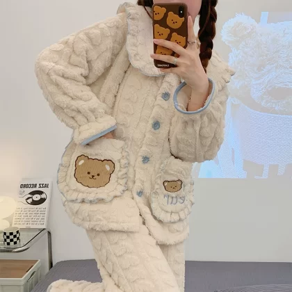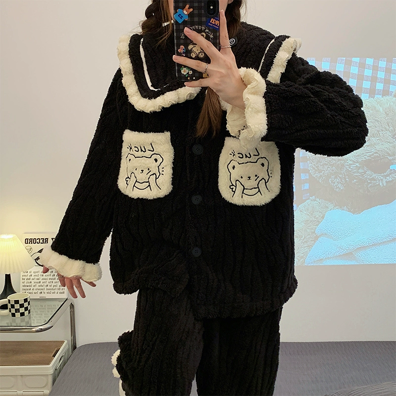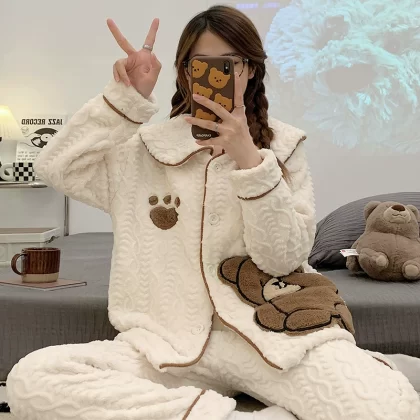 | nameOriginal | 2022 new winter pajamas for women with velvet and thickened coral velvet that can be worn outside, flannel warm home clothes set |