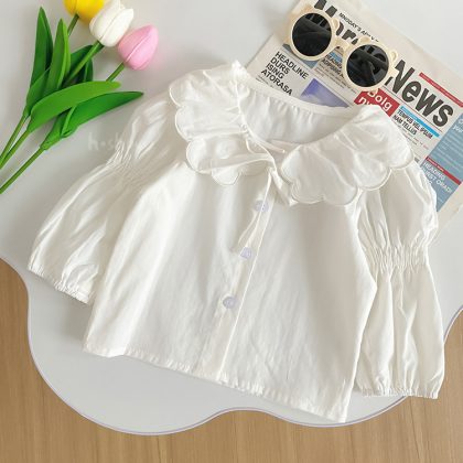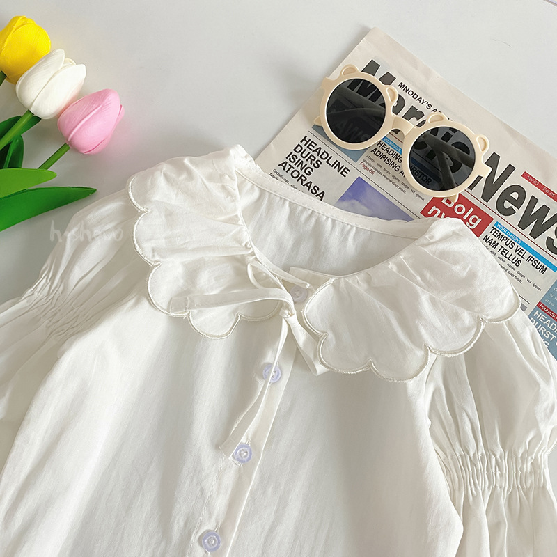 | nameOriginal | 2022 Spring and Autumn New Women's Cute Small Lapel Top Girls' Autumn Girls' Belted Sleeve Cotton Shirt 0029 |