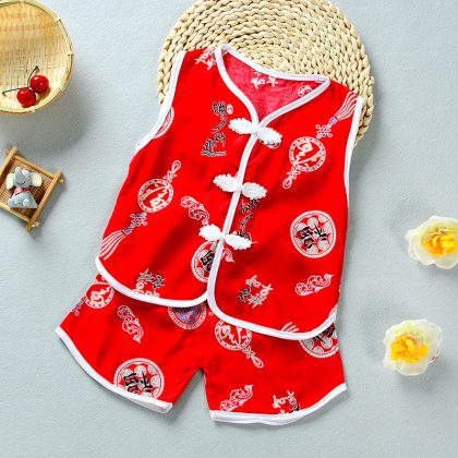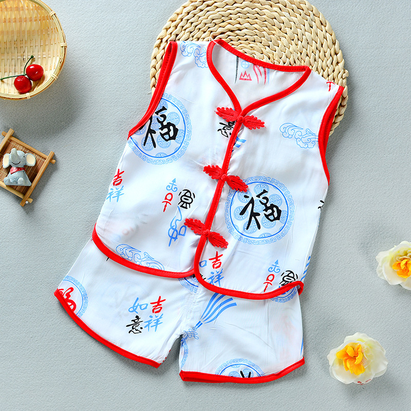 2022 summer new children's Hanfu baby Chinese style retro children's clothing set baby vest Tang suit summer wholesale