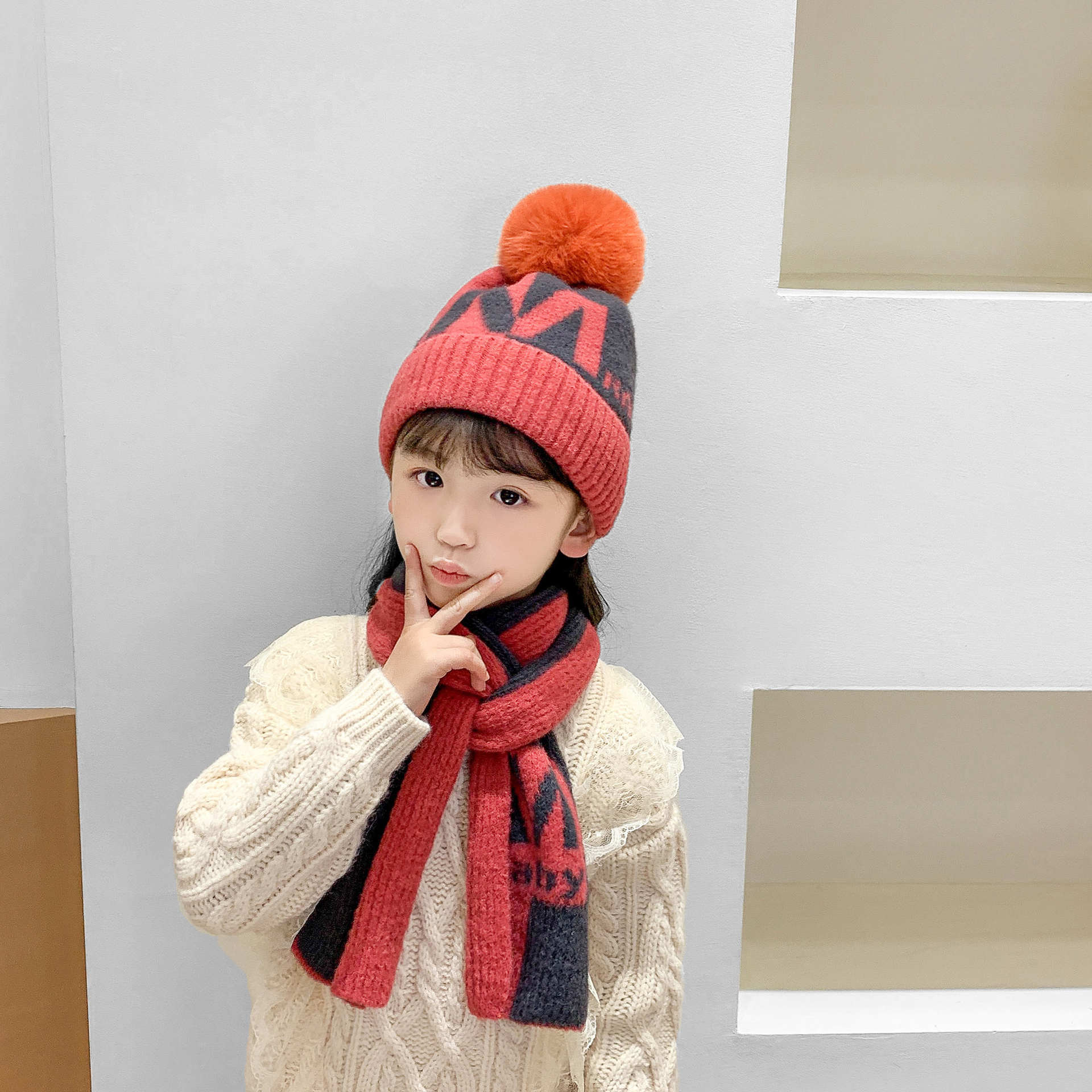 | nameOriginal | 2022 Winter Middle and Large Children's Wool Hat Scarf Set Big M Letter Children's Hair Ball Color Matching Knitted Hat Warm |