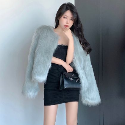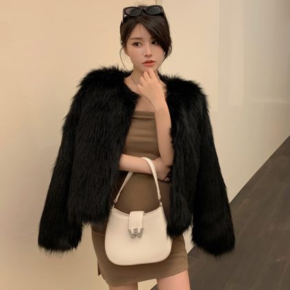 معطف فروي للتخسيس بتصميم كوري جديد أنيق لشتاء 2022 يناسب الجميع معطف سترة قصير فاخر خفيف للنساء