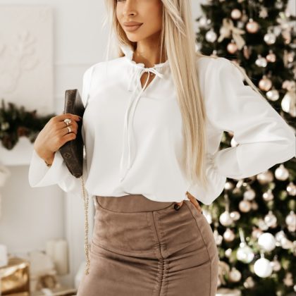 2023 AliExpress wish popular autumn fashion ruffled long sleeve V-neck lace-up solid color women's shirt