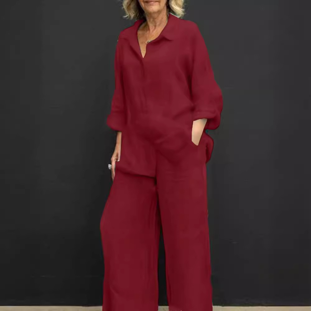 2023 Amazon Casual Set Spring Two-Piece Long Sleeve Top and Wide Leg Pants Set