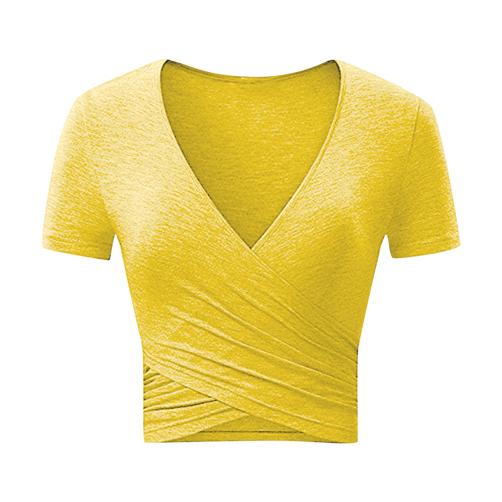 2023 Amazon European and American style new sexy cross V-neck slim fit stitching bottoming shirt short sleeve women's T-shirt