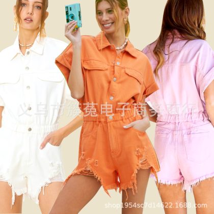 | nameOriginal | 2023 Amazon independent station new popular washed ripped shorts casual elastic waist jumpsuit multi-color women |
