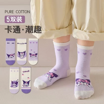 2023 autumn and winter children's socks Kuromi cartoon pure cotton children's socks boys and girls mid-calf socks breathable baby cotton socks trendy